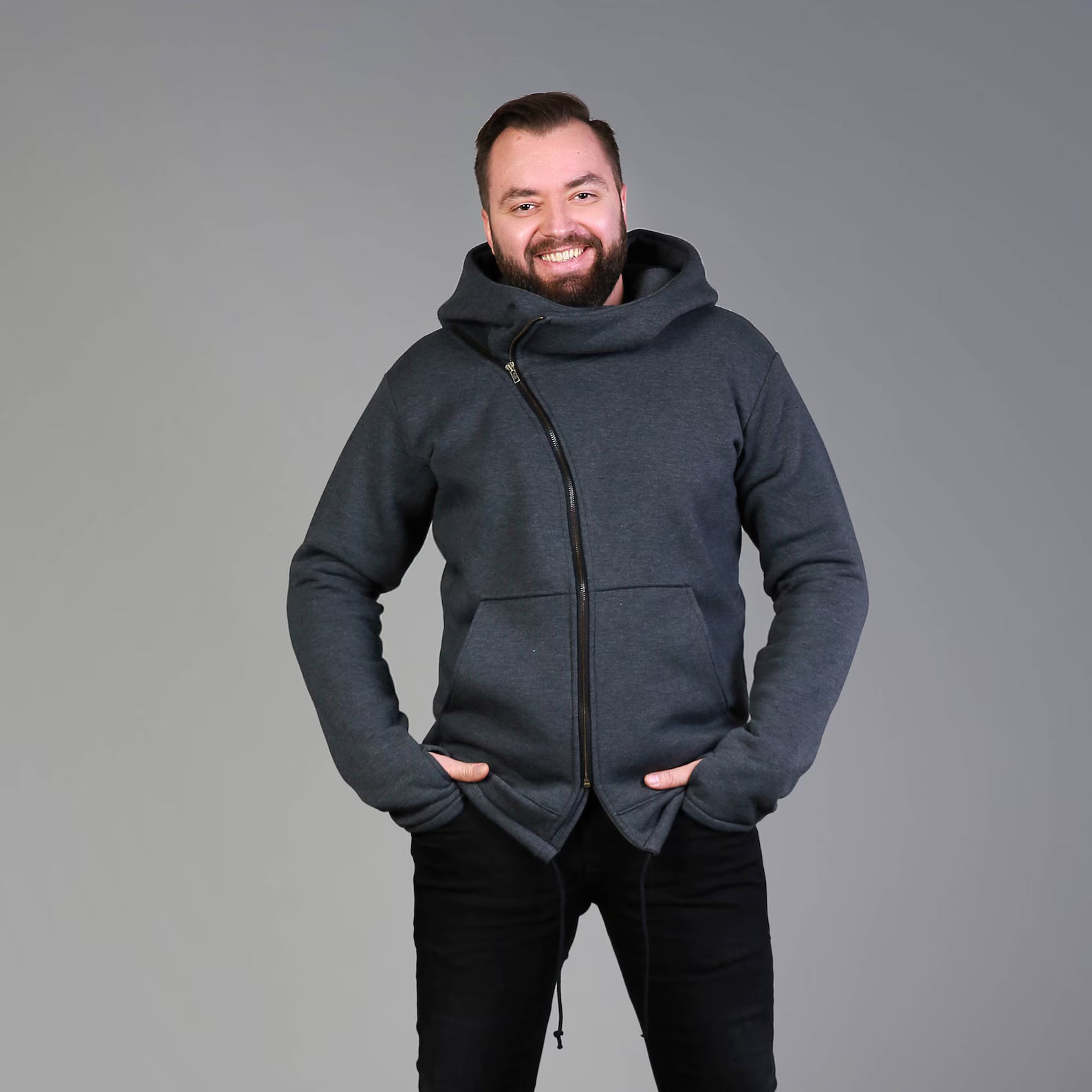 Mens Clothing, Asymmetrical Zip Hoodie, Winter Style, Custom Clothing, Cozy Clothing Gift, Big Hooded Hoodie, Handmade Sweaters,Cold Weather